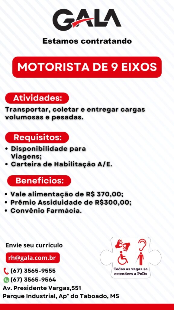 Aparecida do Taboado (MS) – Está em busca de uma oportunidade de emprego? O Costa Leste News reuniu algumas das vagas  de emprego disponíveis nas indústrias Plastrela, Gala e Bello Alimentos. Os interessados devem procurar as respectivas empresas através dos contatos disponibilizados nos anúncios.