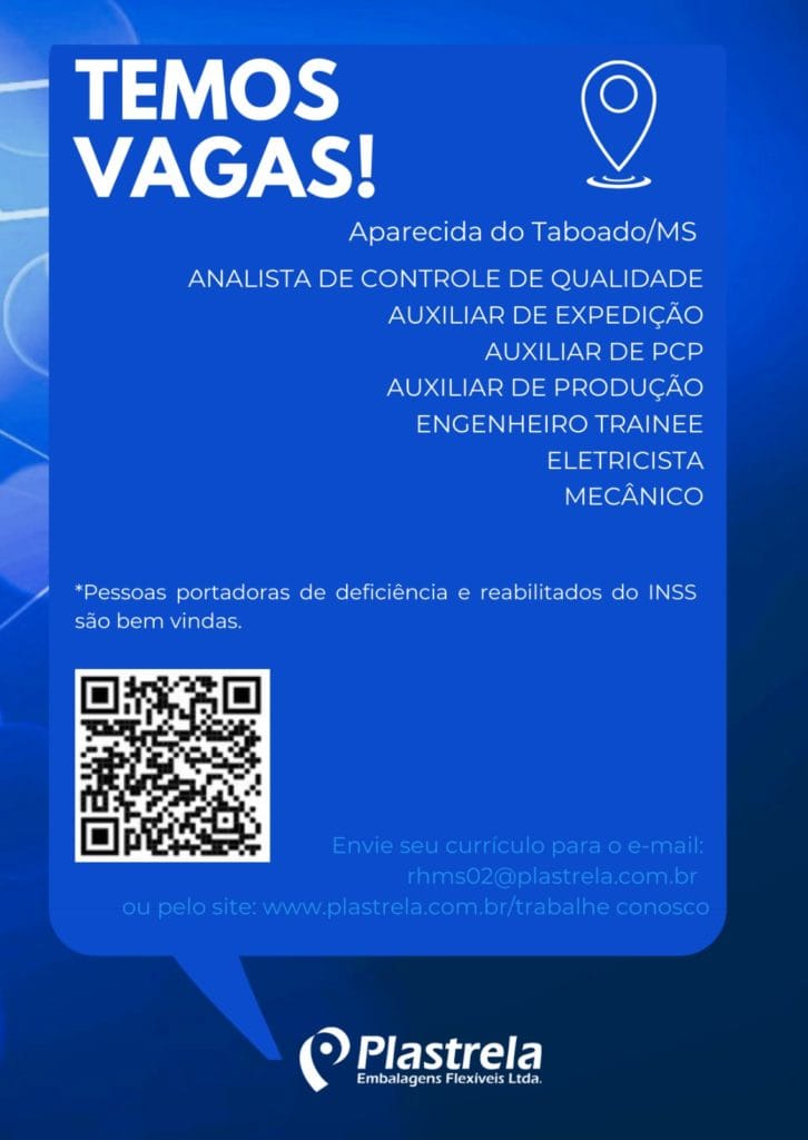 Aparecida do Taboado (MS) – Está em busca de uma oportunidade de emprego? O Costa Leste News reuniu algumas das vagas disponíveis nas indústrias Plastrela, Gala e Bello Alimentos