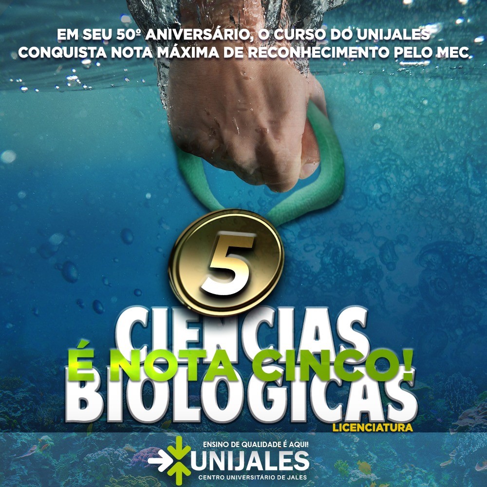 Marcando meio século de excelência acadêmica, o curso de Licenciatura em Ciências Biológicas do Centro Universitário de Jales recebeu a nota máxima (5) no conceito final do Ministério da Educação (MEC). A avaliação ocorreu online entre os dias 22 e 24 de maio, e o curso destacou-se em todos os critérios avaliados, como organização didático-pedagógica, corpo docente, infraestrutura dentre outros.
