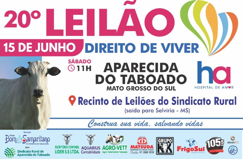 Aparecida do Taboado (MS) – A edição comemorativa de 20 anos do Leilão Direito de Viver em prol ao Hospital do Amor acontecerá neste sábado (15).