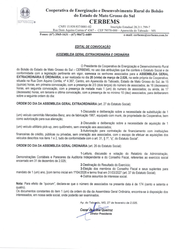 O município de Aparecida do Taboado passará a contar, a partir desta segunda-feira, 2 de março