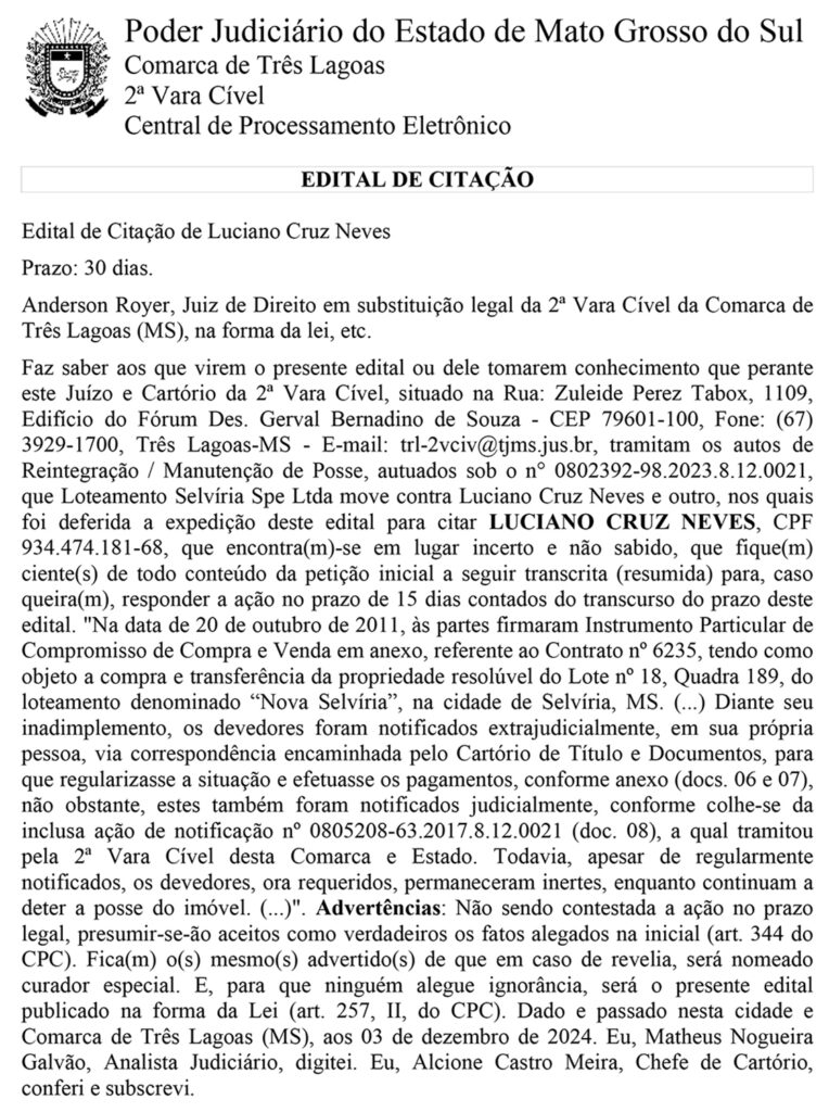 EDITAL: Poder Judiciário do Estado de Mato Grosso do Sul