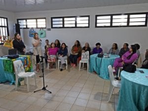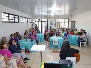 A formação foi com aproximadamente 50 professores do Pré V, 1° e 2° anos do Ensino Fundamental, dos dois turnos (matutino e vespertino), divididos em duas turmas.