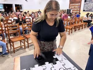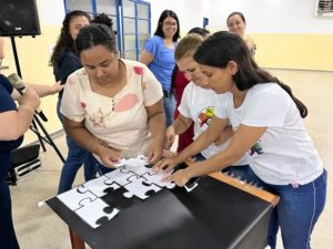 O encontro contou com a participação dos pais e responsáveis pelos estudantes com deficiência, bem como dos professores de apoio, auxiliares do desenvolvimento infantil, diretoras e coordenadoras das unidades escolares.
