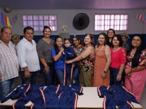Na tarde de 11 de julho, contando com a presença do prefeito José Natan, vice Tenente Ávila, primeira Dama Verônica de Paula, secretária de Educação Ana Rita, secretário de Governo Ber Galter, vereadores Gustavo Neira, Patrícia da Saúde e Gilberto Carrapicho, a administração municipal fez a entrega dos uniformes de inverno personalizados para os alunos atendidos nos Centros de Educação Infantil “Adalberton Rodrigues de Almeida”, “Rosália Queiroz de Oliveira” e “Adelice Bernardes de Melo”, representando todas as demais creches, que também recebem os materiais.