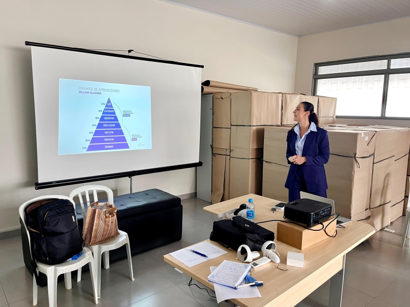 Durante a formação, os professores puderam conhecer na prática o funcionamento dos óculos e experimentar conteúdos interativos que podem contribuir para tornar o processo de ensino e aprendizagem mais dinâmico, atrativo e envolvente para os alunos.