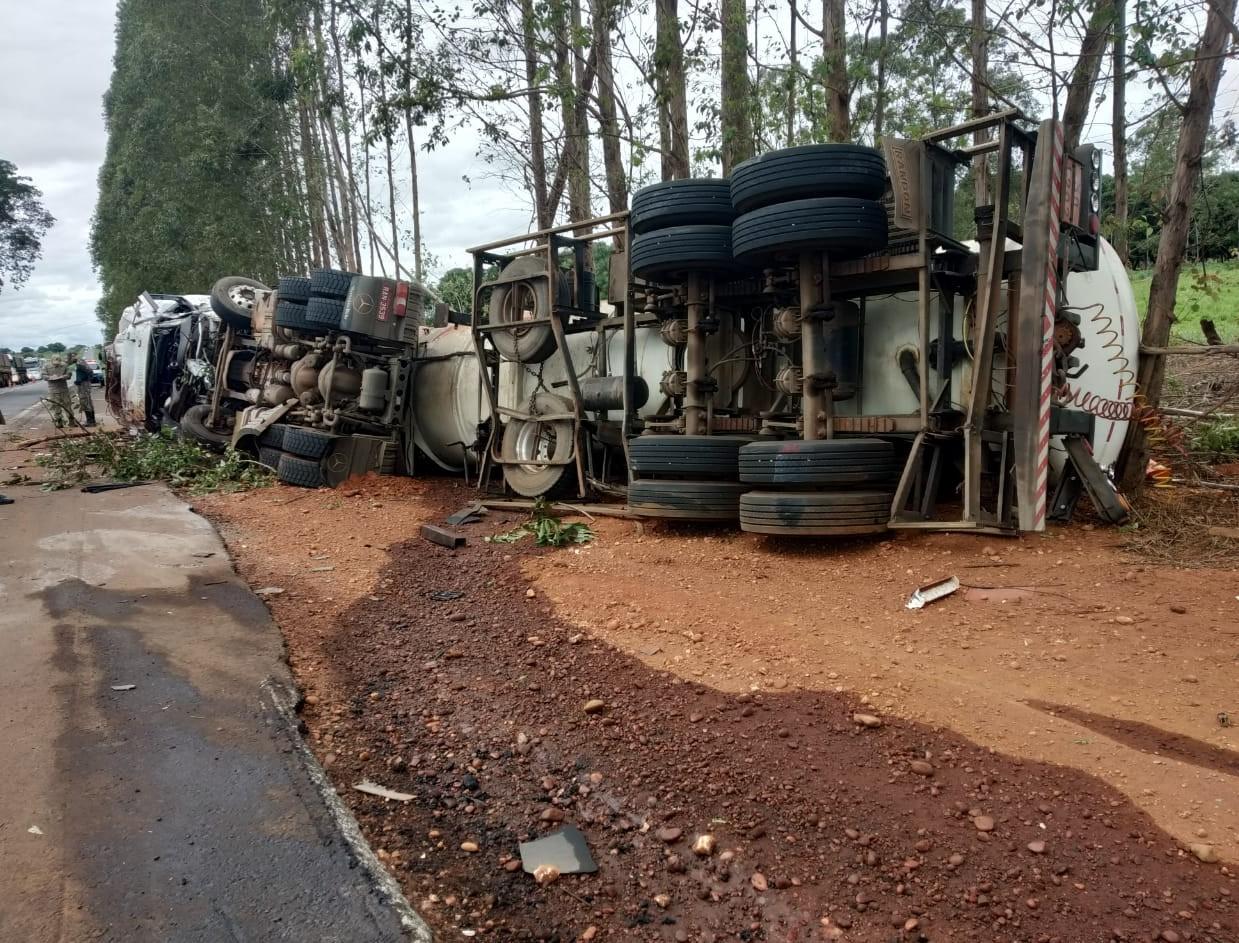 O tombamento aconteceu após acidente envolvendo o veículo, uma carreta bitrem, e um outro caminhão.