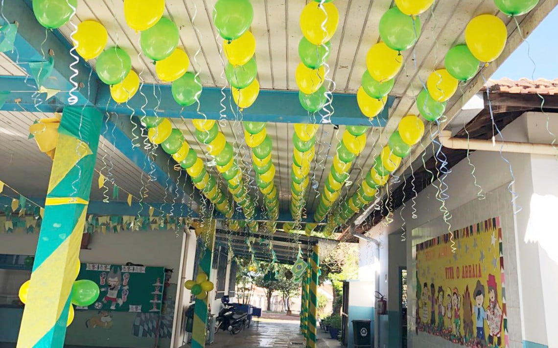 Bandeirolas nas cores verde e amarelo, exposição da Bandeira Nacional, bexigas e cartazes fazem parte da decoração. A diretora, Alaídes Rodrigues Fernandes, contou que “a escola decorada em verde e amarelo deixou todos os alunos, funcionários e professores otimistas para o hexa”.