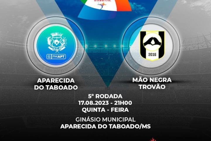 Aparecida do Taboado (MS) – Nesta quinta-feira (17), será realizada a 5ª rodada da “LIF – Liga interior de Futsal” entre os times Aparecida do Taboado e Mão Negra Trovão do município