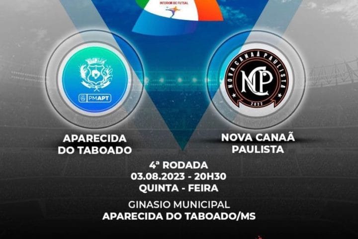 MaisAparecida do Taboado (MS) – Nesta quinta-feira (03) será realizada a 4ª rodada da “LIF – Liga interior de Futsal” entre o município de Aparecida do Taboado e Nova Canaã Paulista. O