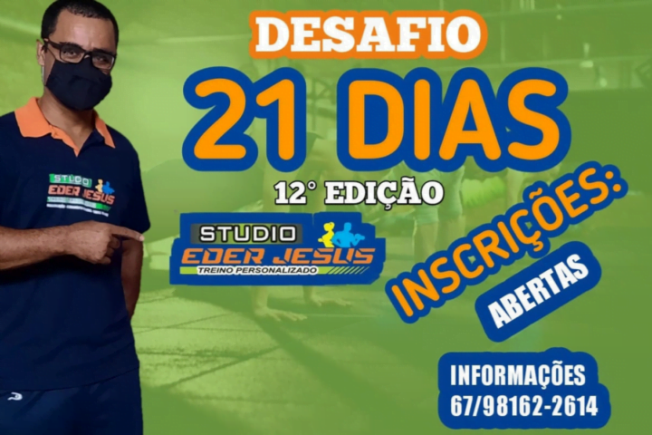 MaisTerá início no dia 06 de novembro, o desafio ‘21 Dias’ realizado pelo Studio Eder Jesus que tem como finalidade premiar os participantes que perderem mais peso ao longo da competição.