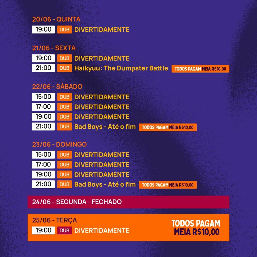 Além da estreia da semana, o cinema também contará com os filmes Haikyuu The Dumpster Battle e Bad Boys: Até O Fim na programação, que acontecerá até o dia 25 de junho, terça-feira.