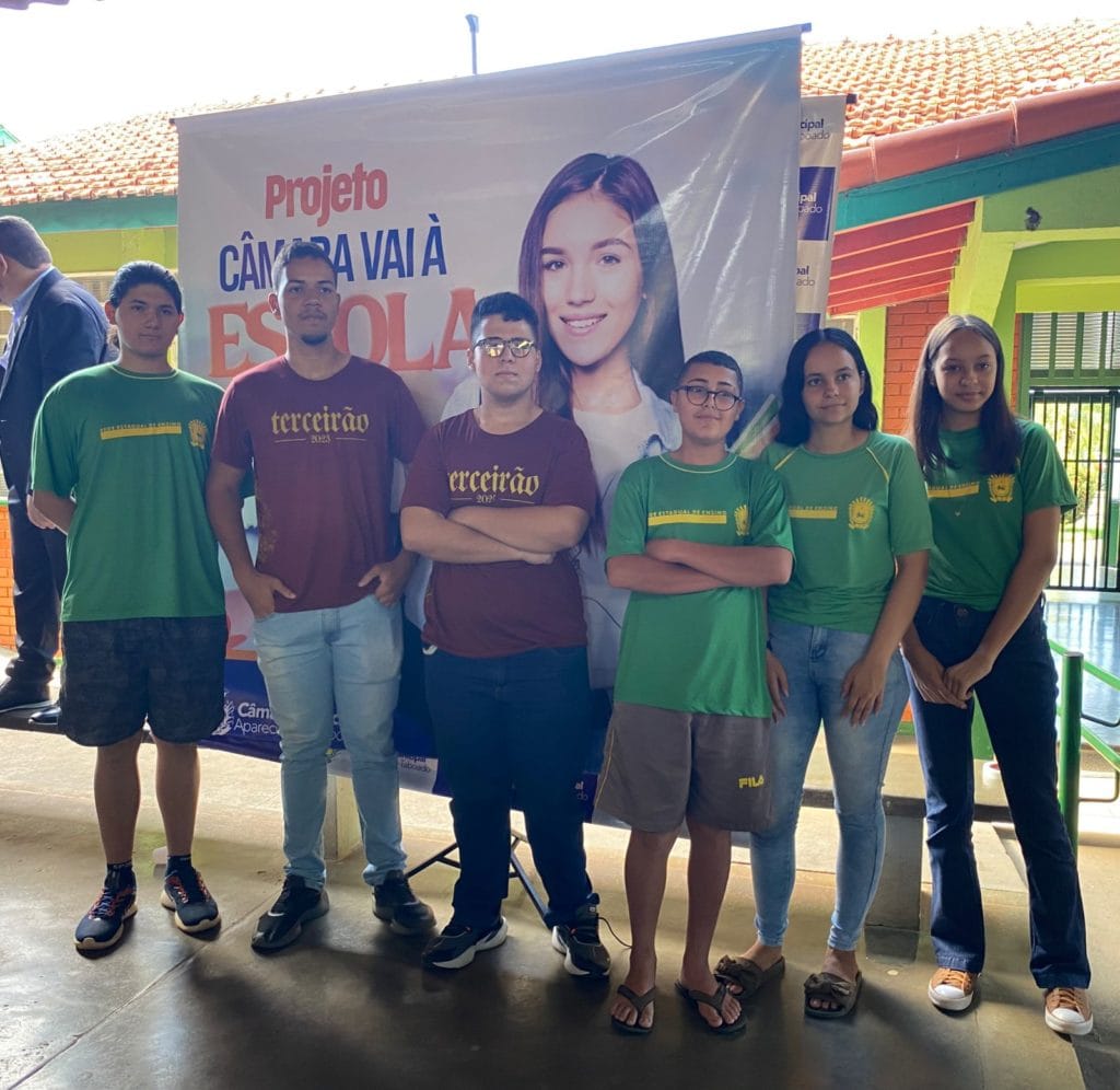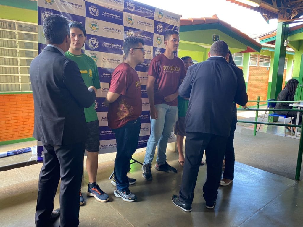 Aparecida do Taboado (MS) – Na manhã desta terça-feira (19), foi realizado o primeiro encontro do projeto “Câmara Vai À Escola”, na Escola Estadual Georgina de Oliveira Rocha. O programa que já foi feito em outros municípios, agora está presente em Aparecida do Taboado, através da iniciativa do vereador e atual presidente da câmara, Jucleber Bim.