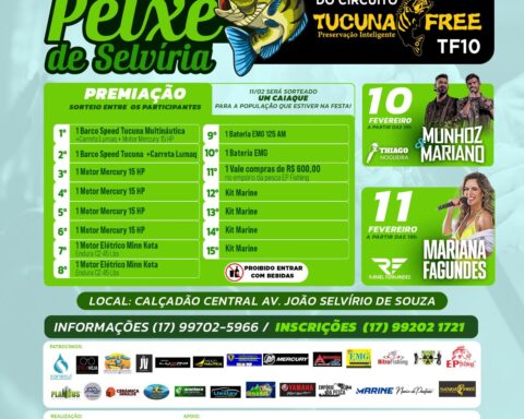 MaisContinuam abertas as inscrições para a etapa de Selvíria do Circuito de Pesca Tucuna Free, que acontece neste sábado (11), dentro da programação da 2ª Festa do Peixe.