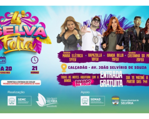 MaisO “4º Selva Folia”, que acontece de 17 à 20 de fevereiro, com entrada gratuita, será realizado na mesma estrutura utilizada na “Festa do Peixe”. A realização é da Prefeitura de Selvíria,