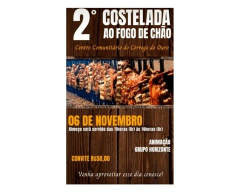 MaisNo dia 6 de novembro acontecerá a “2° Costelada Ao Fogo de Chão” no Centro Comunitário do Córrego do Ouro. O dinheiro arrecadado é investido em serviços de manutenção da comunidade, que