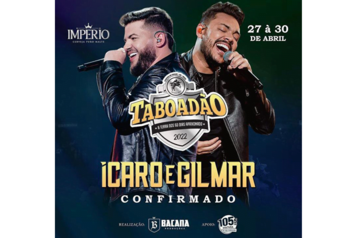 MaisFoi confirmado através da organização do Taboadão nesta sexta-feira (18) o show da dupla João Bosco e Vinícius como mais uma atração da festa. Nos dias anteriores, já haviam sido confirmados os