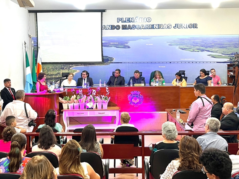 Além do vice-prefeito e da primeira-dama, estiveram presentes à sessão solene as secretárias de Administração, Fernanda Ziviani, de Assistência Social, Ariadne Queiroz, e a secretária adjunta de Educação, Maria Dalva.
