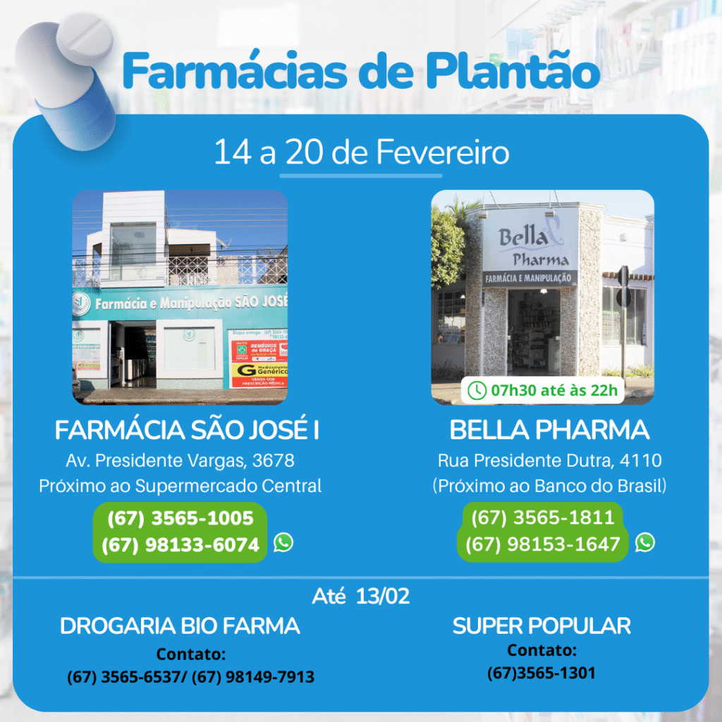 Farmácia de Plantão (14 a 20 de Fevereiro)