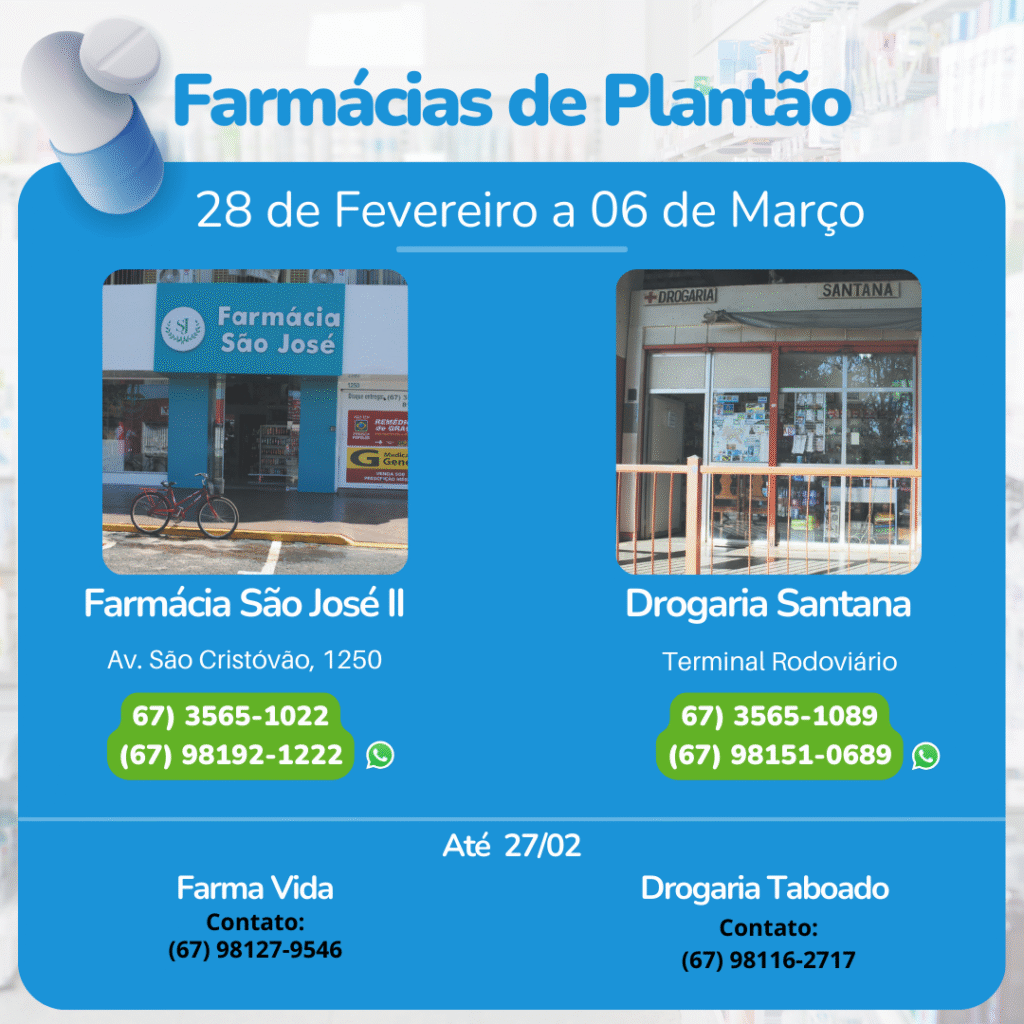 Farmácia de Plantão (28 de Fevereiro a 06 de Março)