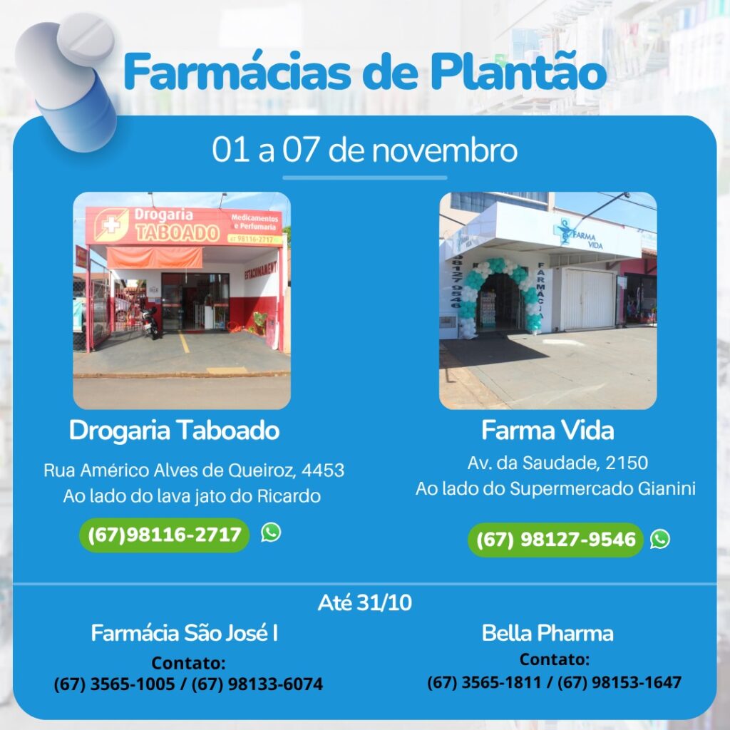 Farmácia de Plantão em Aparecida do Taboado (01 a 07 de Novembro)