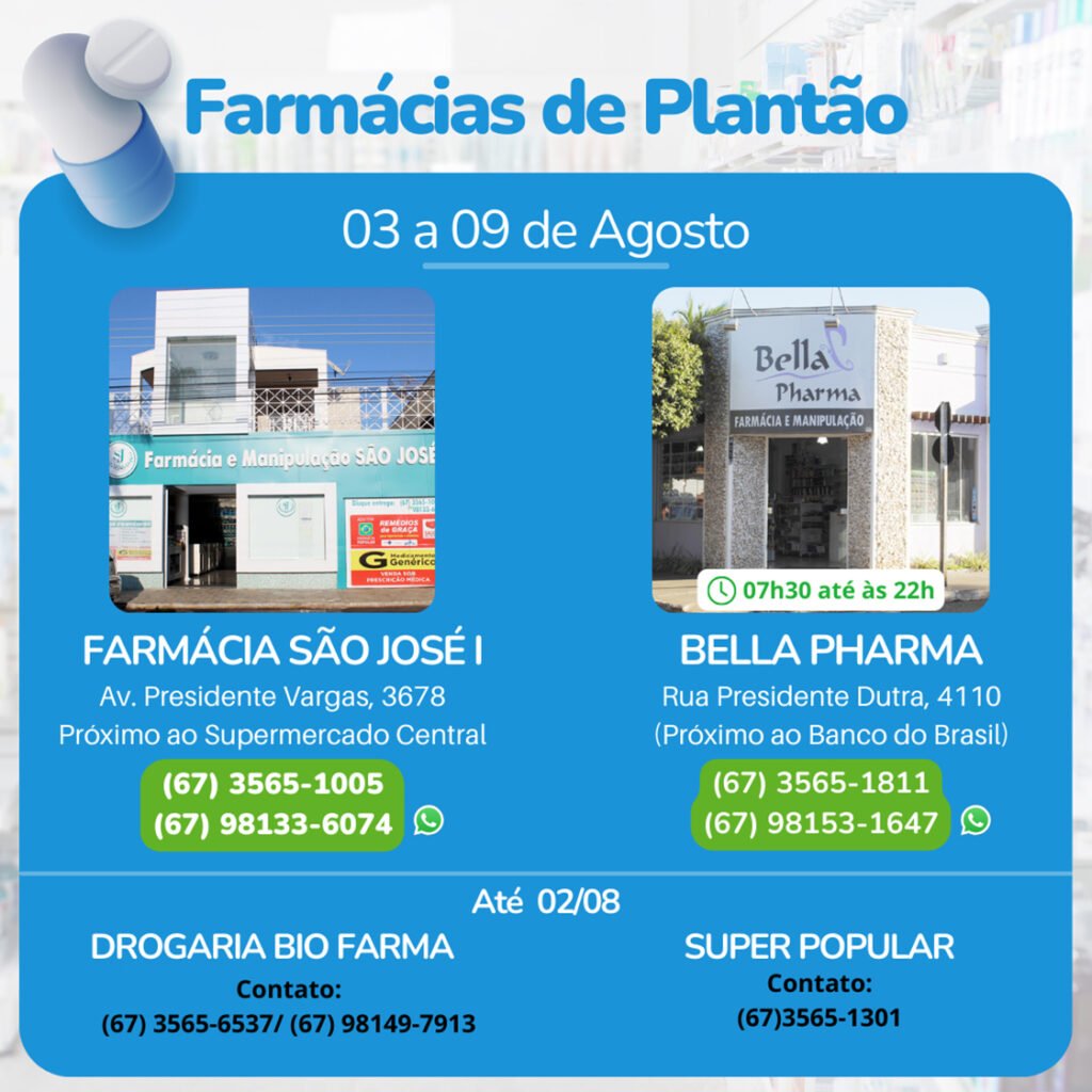 Farmácia de Plantão em Aparecida do Taboado (03 a 09 de Agosto)