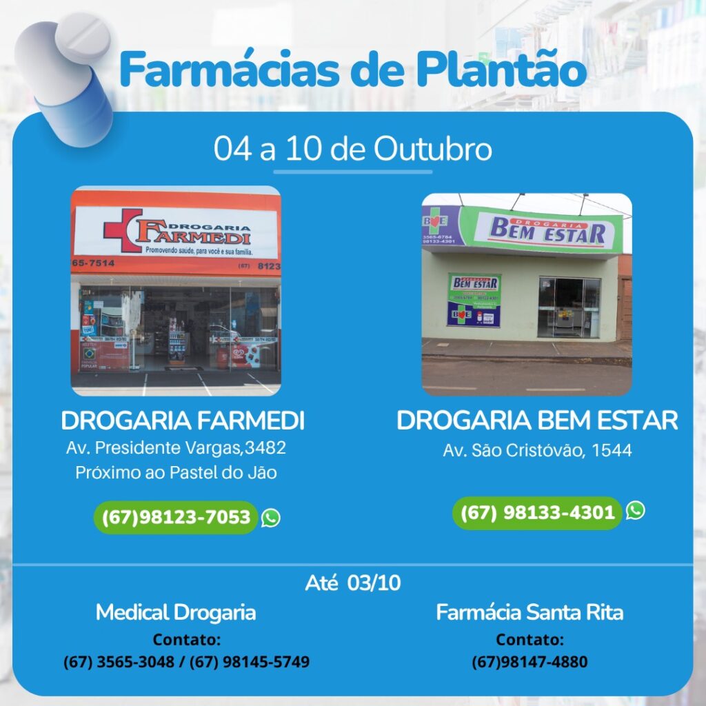 Farmácia de Plantão em Aparecida do Taboado (04 a 10 de Outubro)