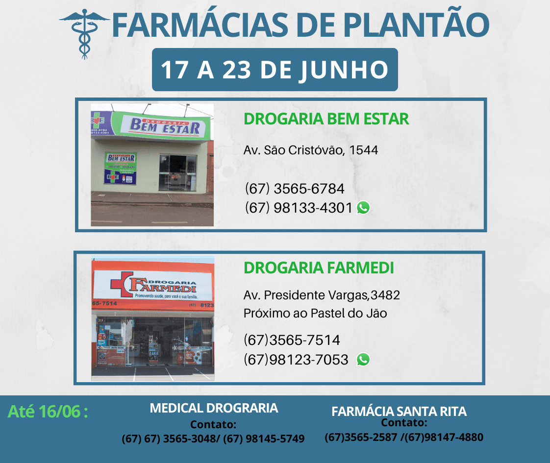 Farmácia de Plantão em Aparecida do Taboado (17 a 23 de Junho)