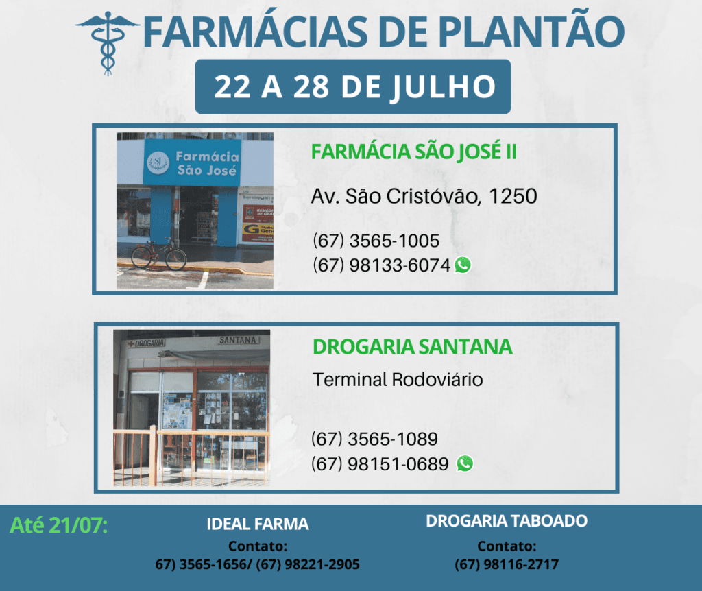 Farmácia de Plantão em Aparecida do Taboado (22 a 28 de Julho)