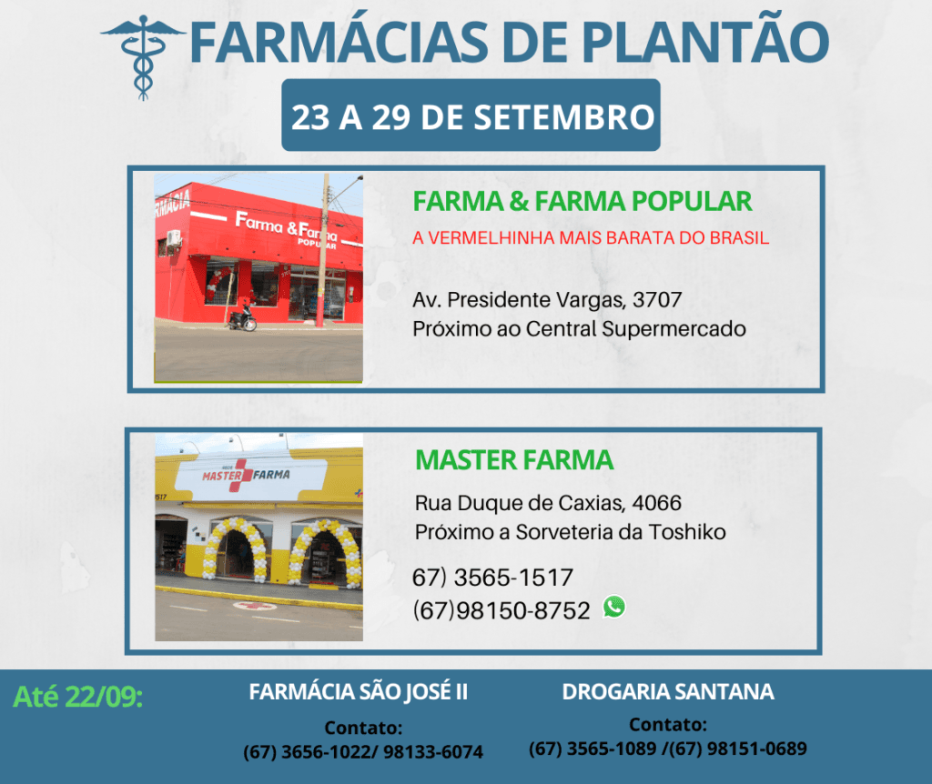 Farmácia de Plantão em Aparecida do Taboado (23 a 29 de Setembro)