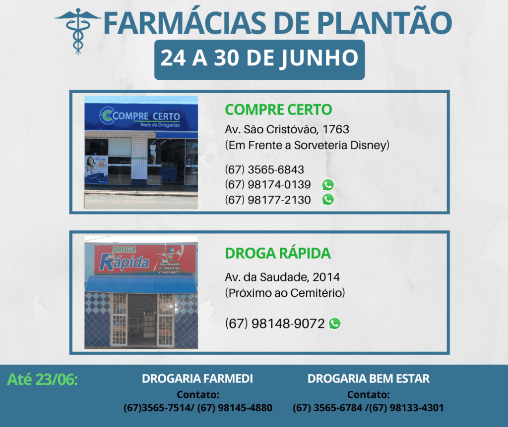 Farmácia de Plantão em Aparecida do Taboado (24 a 30 de Junho)