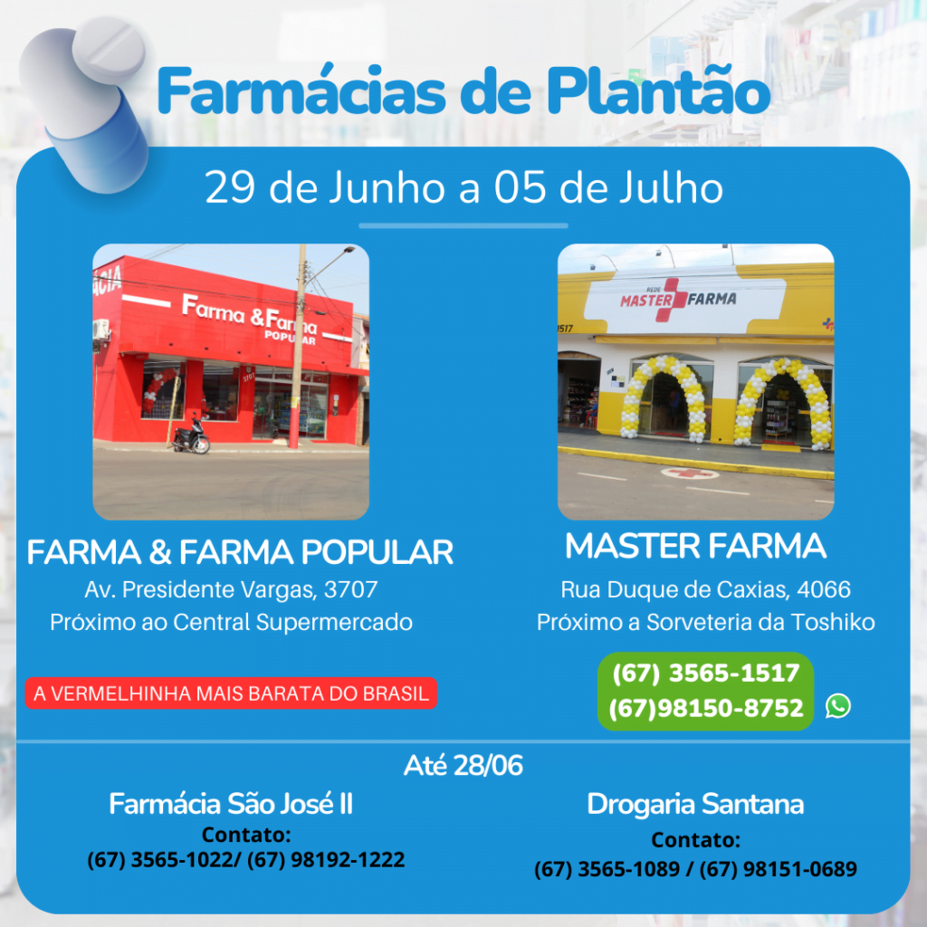 Farmácia de Plantão em Aparecida do Taboado (29 de junho a 05 de julho)