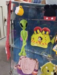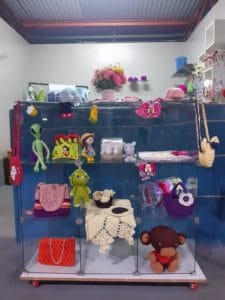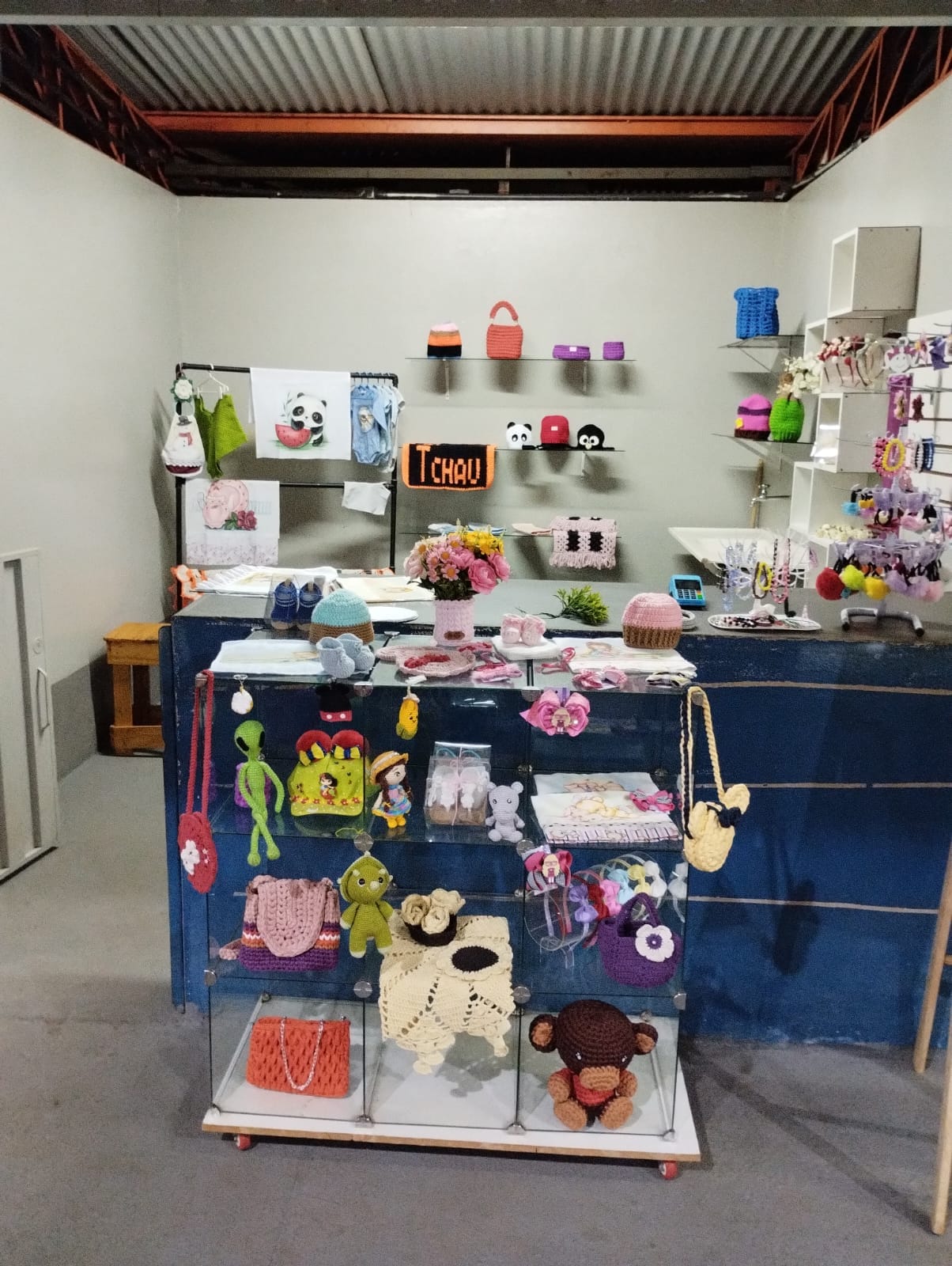 No box é possível encontrar itens como sapatinhos em crochê, bolsas, pintura, colagens, pulseiras, laços para cabelo e amigurumis, que são os bichos feitos de crochê.