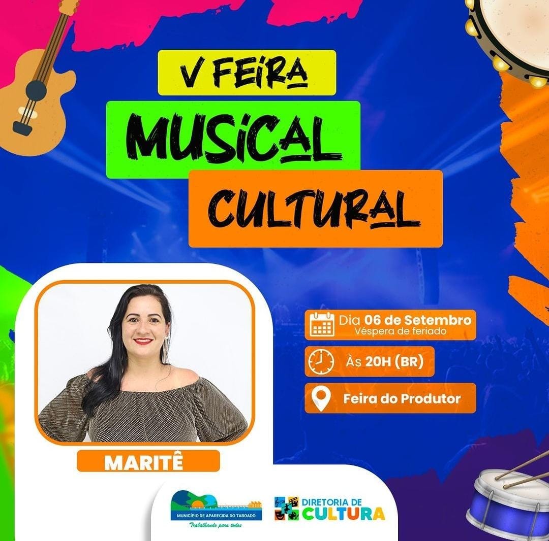 Aparecida do Taboado (MS) – Para animar a noite desta quarta-feira (06), a Feira do Produtor em parceria com a Prefeitura Municipal, promoverá um show ao vivo com a cantora Maritê a partir das 20h (br). A programação faz parte da V Feira Musical Cultural.