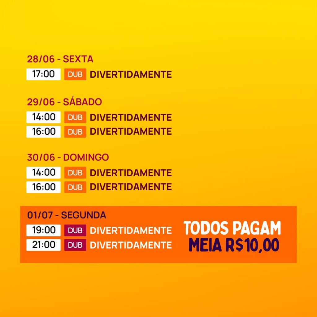 Confira os horários das sessões: