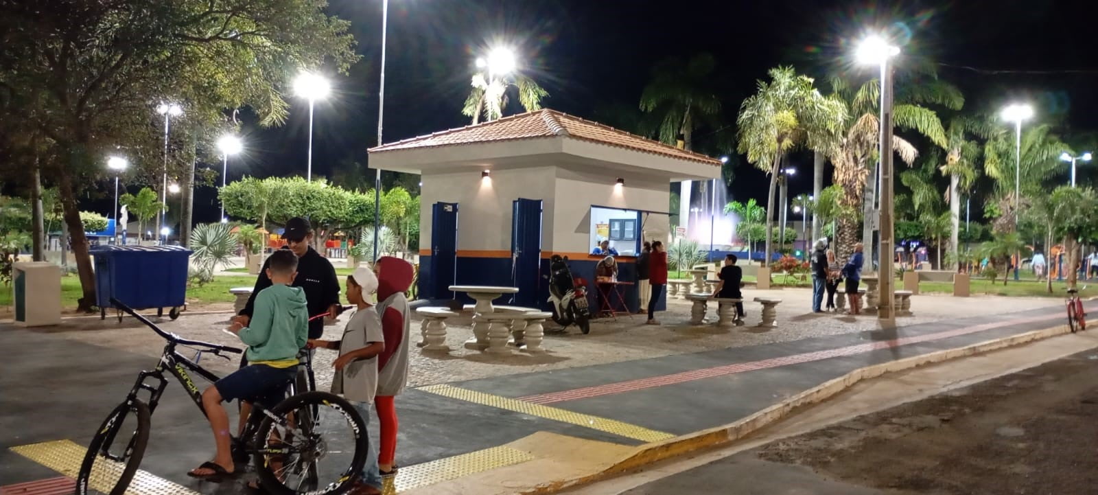 O espaço público ganhou dois novos quiosques, um deles localizado na esquina da Rua Dom Aquino Corrêa e Francisco de Queiroz, na frente da Igreja Matriz, onde está sendo comercializando pastéis e bebidas, atraindo mais frequentadores.