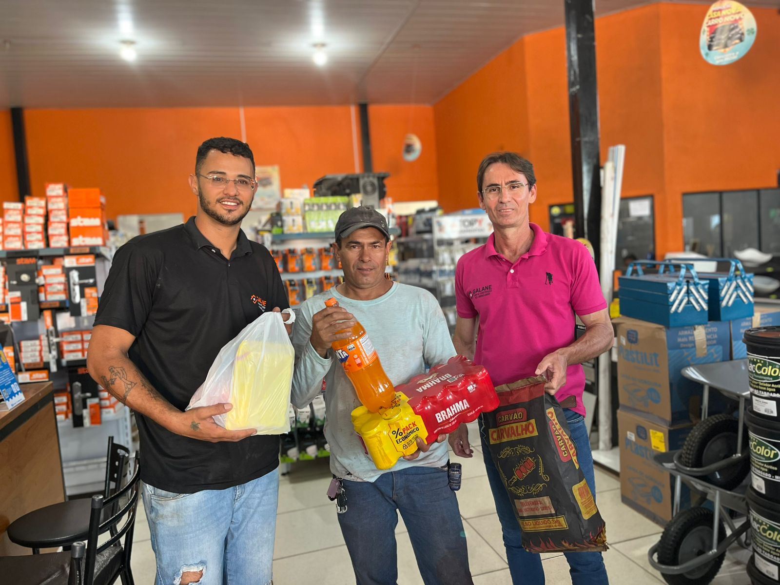 No último sorteio, realizado dia 28 de novembro de 2025, o contemplado foi Adilson de Melo Ribeiro, que recebeu um kit completo com 3 kg de carne (linguiça, frango e bovina), refrigerante, uma caixa de cerveja e carvão — uma ótima oportunidade para celebrar o fim de semana com a família.