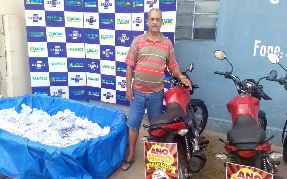 Aparecida do Taboado (MS) – Um dos 3 ganhadores das motos sorteadas pela Associação Comercial e Industrial (ACIAT), o senhor Antônio Abaldio Gomes, ficou muito feliz com o prêmio e bem surpreso por ter sido um dos contemplados, "quem diria que no meio de tantos cupons ia sair um no meu nome? Estou muito feliz e bastante satisfeito. É a primeira vez que eu ganho", disse ele, orgulhoso.