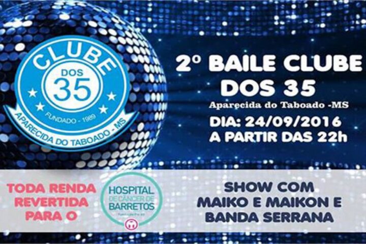 MaisA Diretoria do Clube dos 35 está organizando para este sábado, dia 24, o 2º Baile Beneficente em prol do Hospital do Câncer de Barretos. Toda a renda do evento será revertida