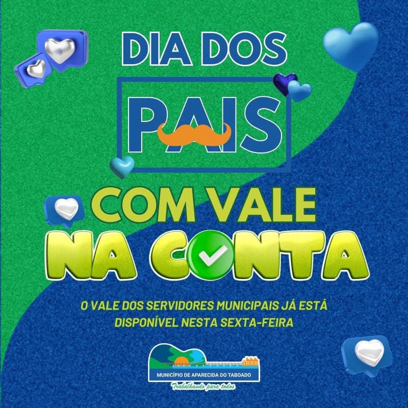 O Governo Municipal de Aparecida do Taboado, por meio da Secretaria de Fazenda e Planejamento, liberou nesta sexta-feira (11), de forma antecipada (celebração do Dia dos Pais) o pagamento do adiantamento salarial (vale) de 864 servidores públicos municipais, que já está disponível para saque.
