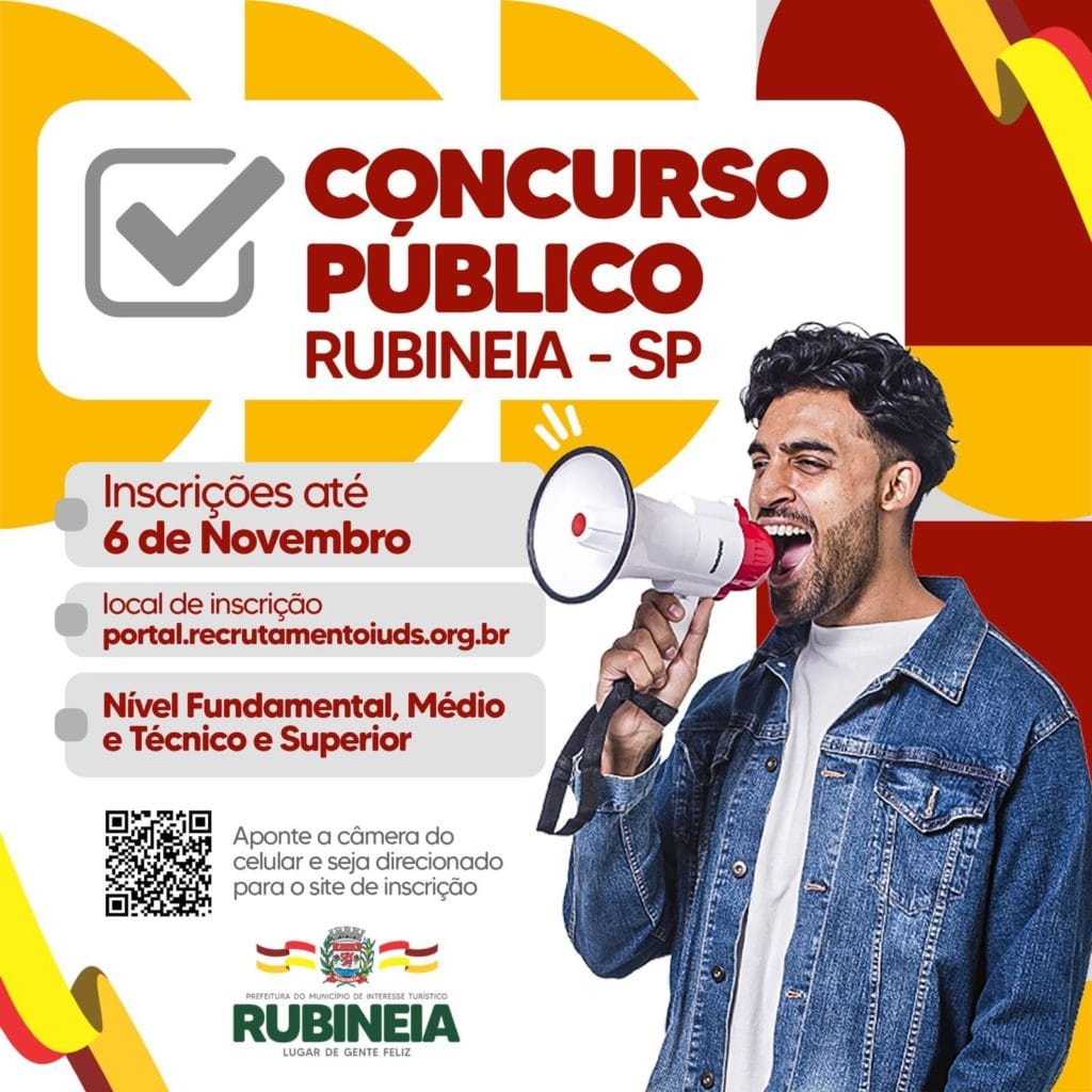 Inscrições para o concurso público da Prefeitura de Rubinéia terminam hoje