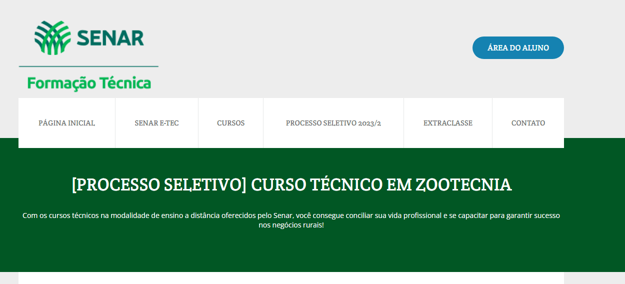 As inscrições estão abertas através do site http://etec.senar.org.br/curso-tecnico-em-zootecnia-processo-seletivo-20232/ até o dia 10 de julho. O curso é destinado para quem possui o ensino médio completo.