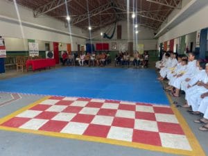 A diretora do instituto, Irmã Silvana agradeceu aos presentes e exaltou os pais dos alunos que acreditam e apoiam o projeto, além da responsável pelas aulas, a Sensei Lilian Queiroz de Oliveira, que é faixa preta 2Dan.