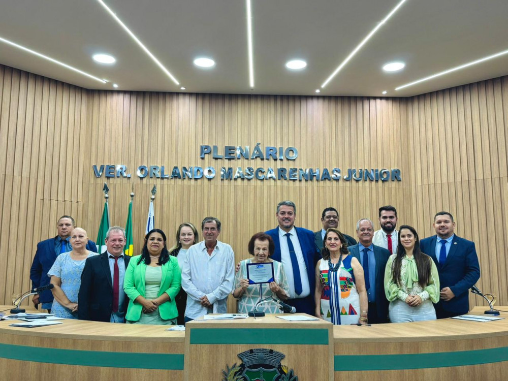 Nesta segunda-feira, dia 8 de dezembro, na sessão ordinária da Câmara Municipal de Aparecida do Taboado, o vereador Ber Galter, presidente do Legislativo, apresentou uma Moção de Congratulações à senhora Adélia Samara de Almeida, em celebração aos seus 90 anos de vida, uma trajetória marcada pela dedicação e compromisso com a comunidade aparecidense.