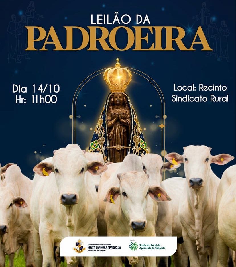Aparecida do Taboado (MS) – Para marcar o encerramento das festividades de Nossa Senhora Aparecida, a Paróquia Santuário realizará neste sábado (14), mais uma edição do tradicional Leilão da Padroeira.