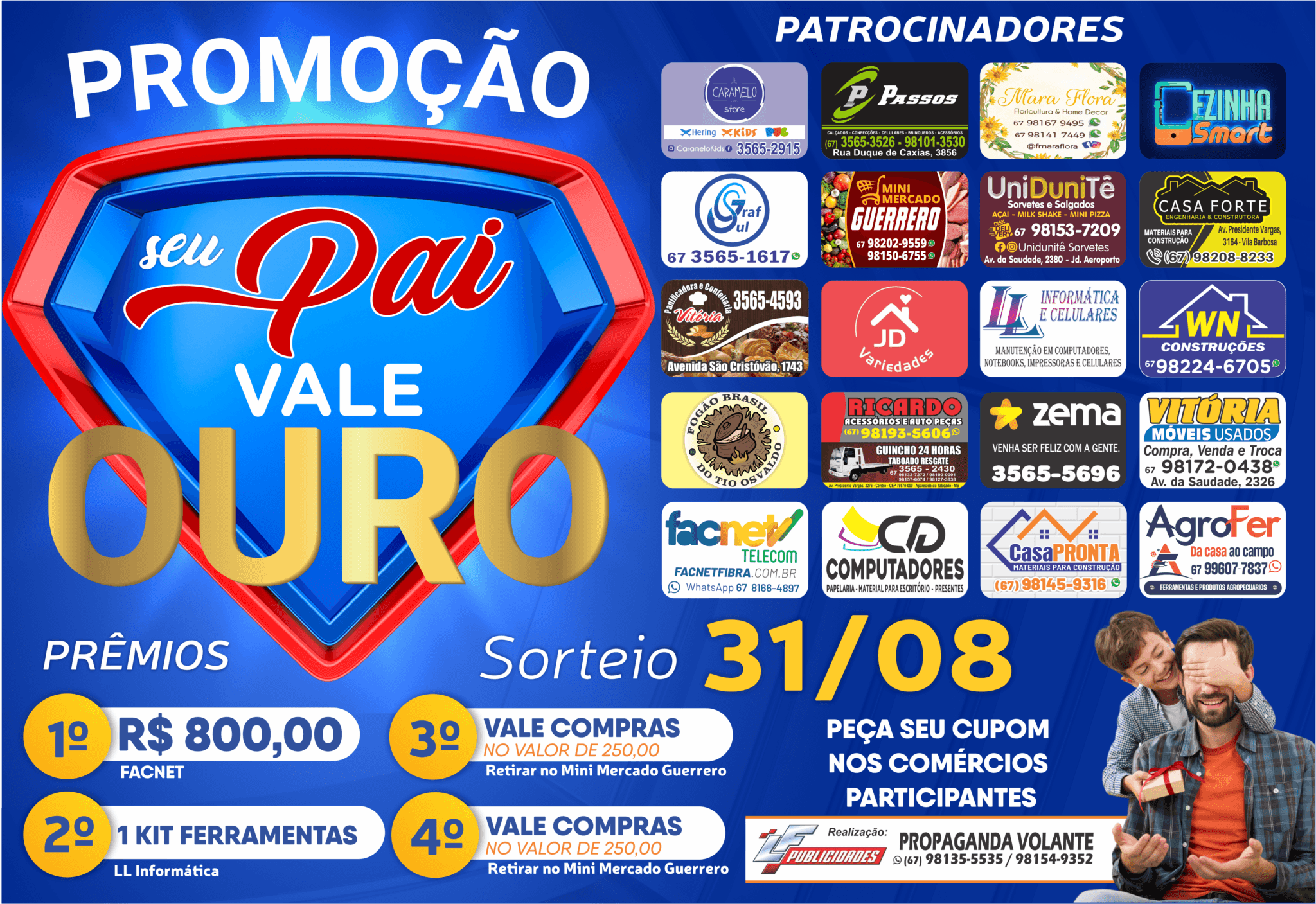 Aparecida do Taboado (MS) – Aconteceu na última segunda-feira (04) a entrega dos prêmios para os ganhadores da promoção “Seu pai vale ouro”, promovida pela LF Publicidades.