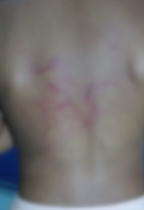 Ao chegar na residência indicada, o Conselho Tutelar verificou que a criança apresentava hematomas pelo corpo e escoriações nas costas. Depois de ser questionada, a mãe da criança afirmou que a criança havia caído e batido o olho, justificando os ferimentos.