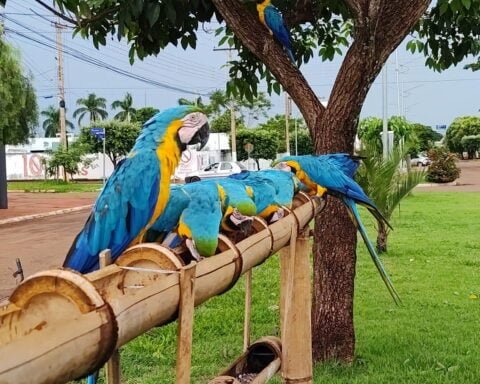 MaisO espaço de alimentação criado pela Prefeitura de Selvíria, por meio da Secretaria de Turismo e Meio Ambiente, já vem atraindo diversas araras-canindé.