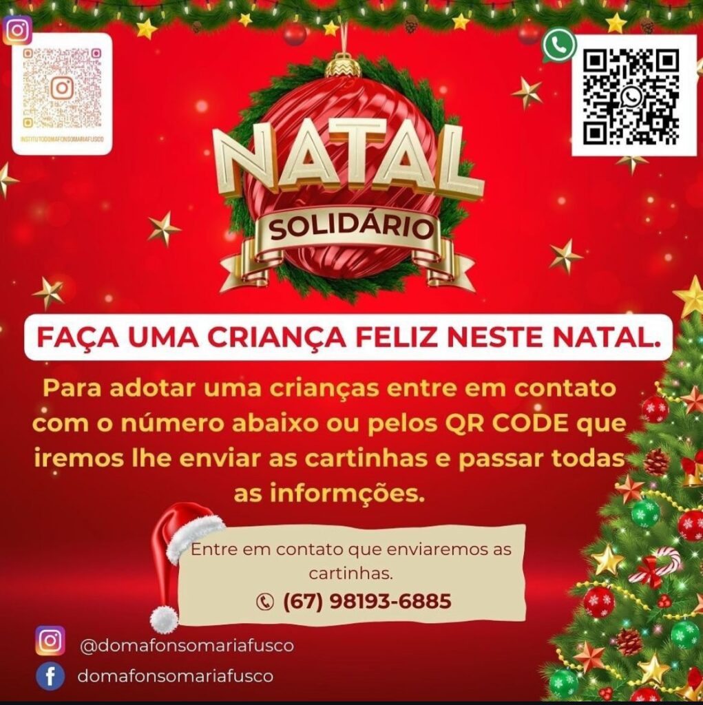 O apadrinhamento das cartas pode ser feito até a primeira quinzena de dezembro e os interessados devem entrar em contato com a irmã a educadora Elaine (67) 98193-6885.