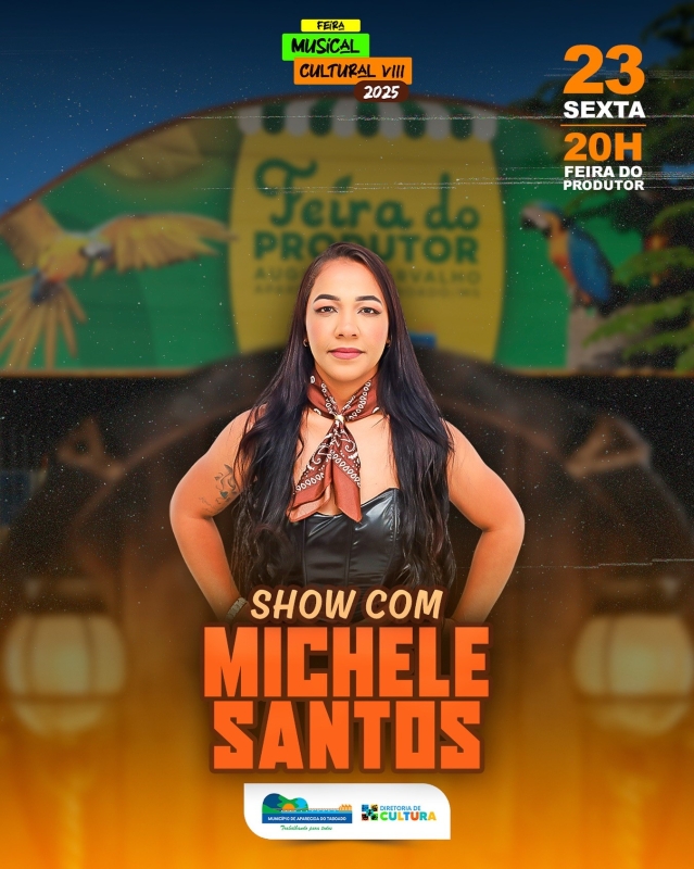 Nesta edição, quem assume o comando do palco é a cantora Michele Santos, que apresentará um repertório diversificado, com sucessos de diferentes estilos e propostas voltadas ao entretenimento do público.